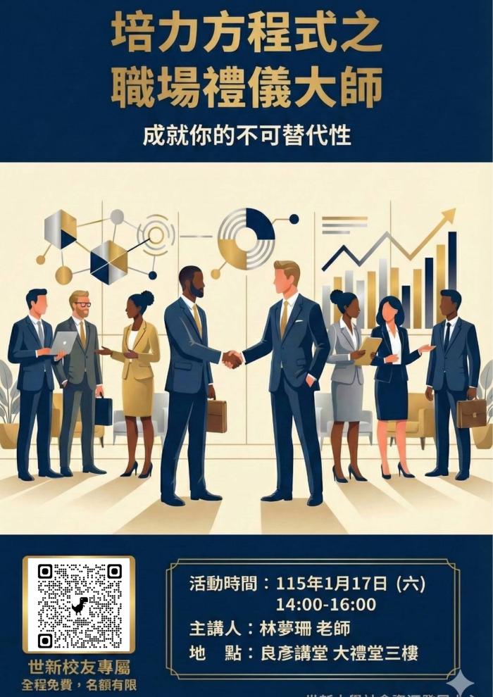 首發場將從最核心的**「職場禮儀」**出發, 整合溝通、形象與專業應對,協助您在細節中贏得信任!